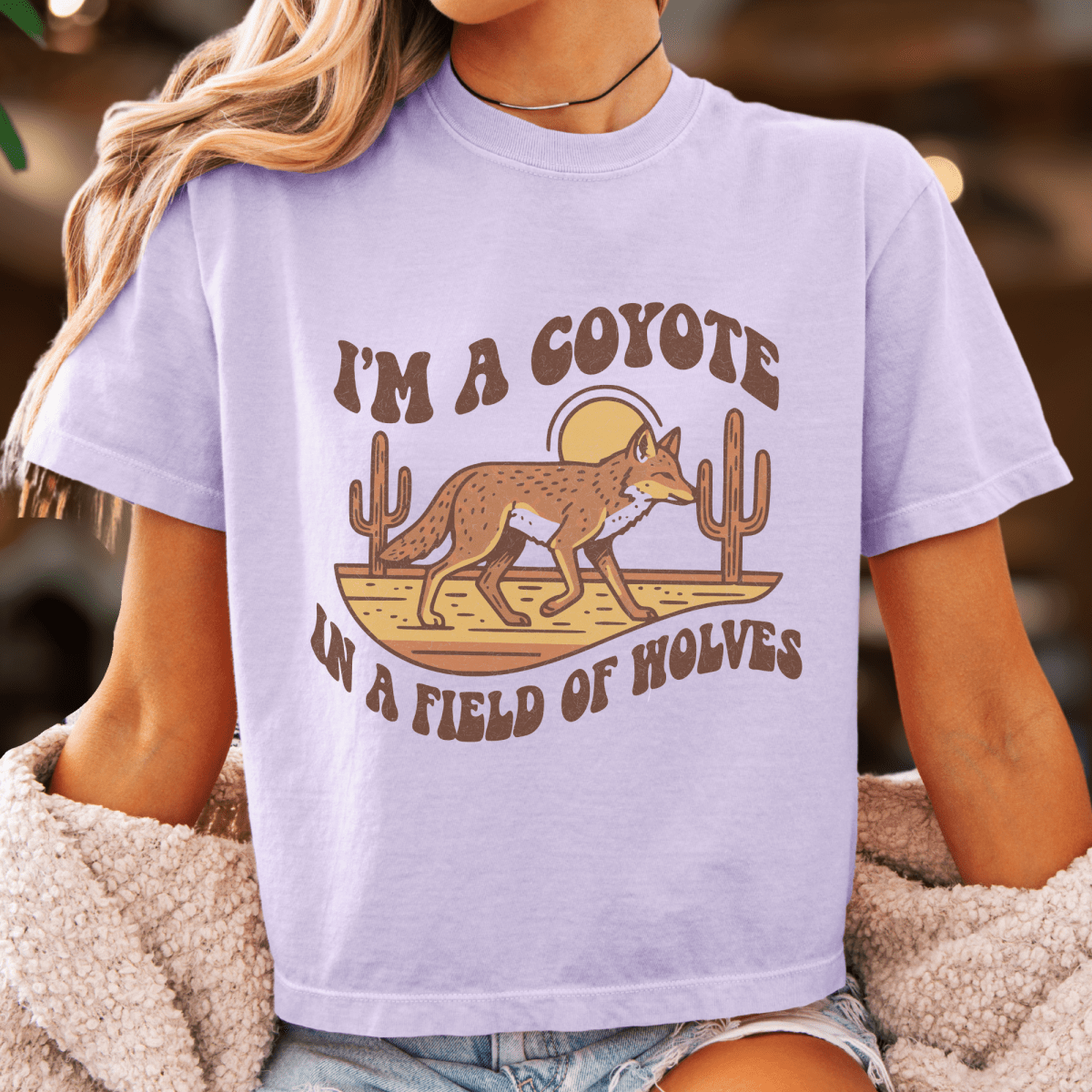 The I'm a Coyote design leans into that vintage desert outlaw energy — retro graphics, sun-faded vibes, the kind of shirt that looks like it's been through a few summer tours already. In the best way.