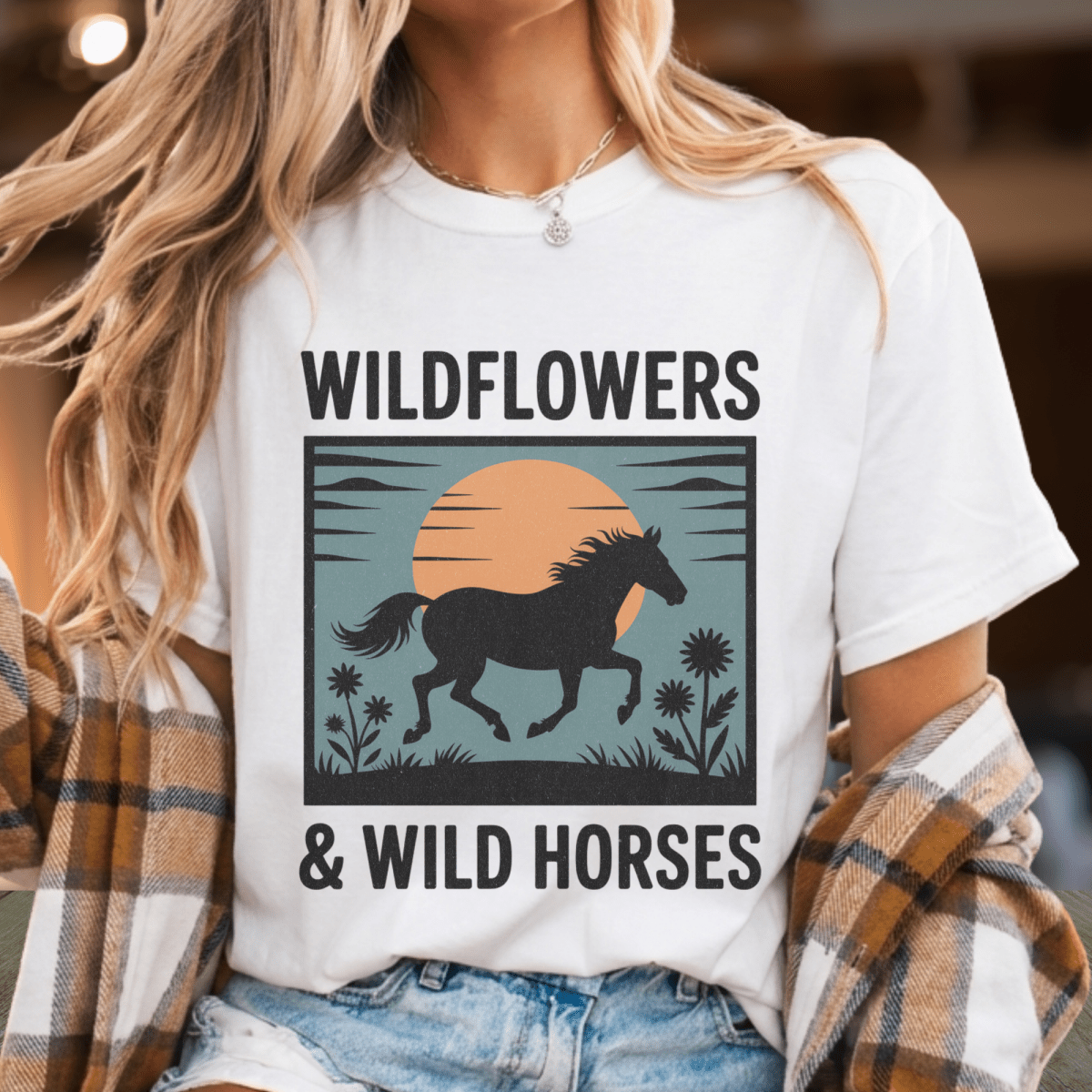 Four fifths reckless, one fifth jack — this design is for the Lainey fan who feels every word of this song in her bones. A horse running free through wildflowers, faded and sun-worn like it belongs on a back road in Louisiana, on the softest tee you'll reach for all summer long.