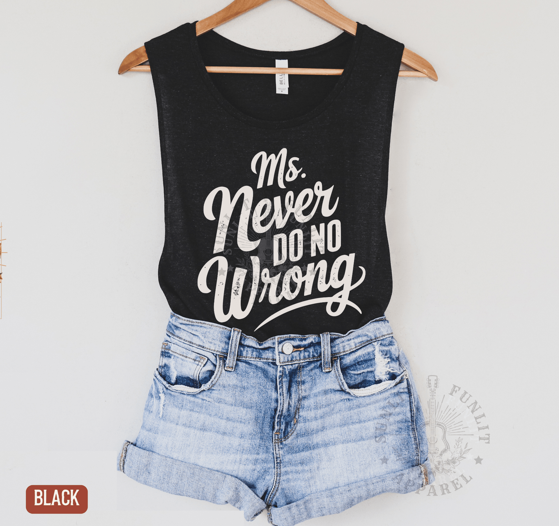Ms Never Do No Wrong Muscle Tank - Wallen Concert Tank Top - Sunlit Funlit | Graphic Tees for Country Concert Addicts